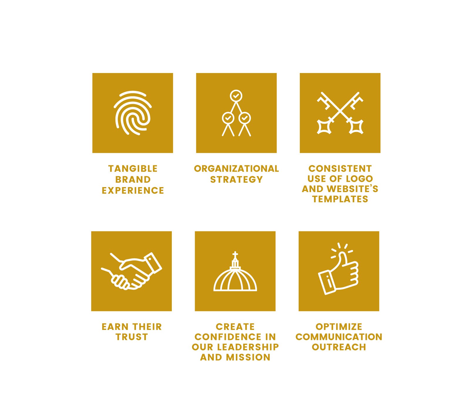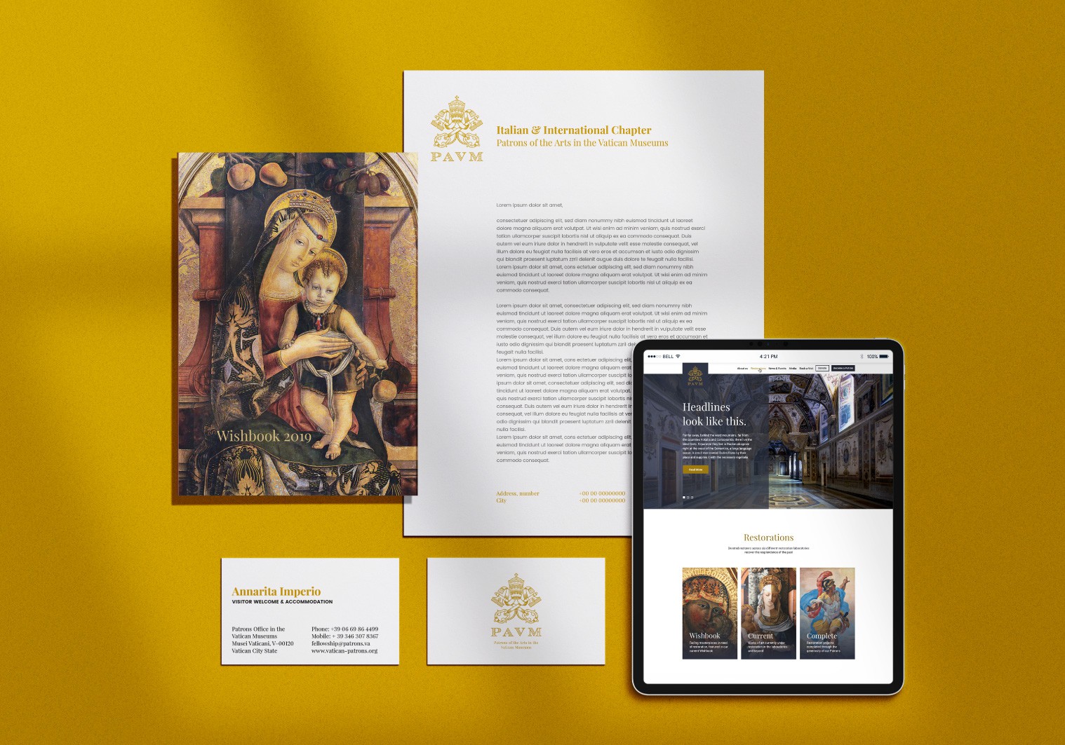 The Patrons of the Arts promote, restore, and conserve the artistic patrimony of the collections and buildings of the Vatican Museums. This great institution in need of a new look put faith in us. Finding a coherent and outstanding identity for Patrons of the Arts and the 26 Chapters, that so far have kept different identities, has been our challenge.